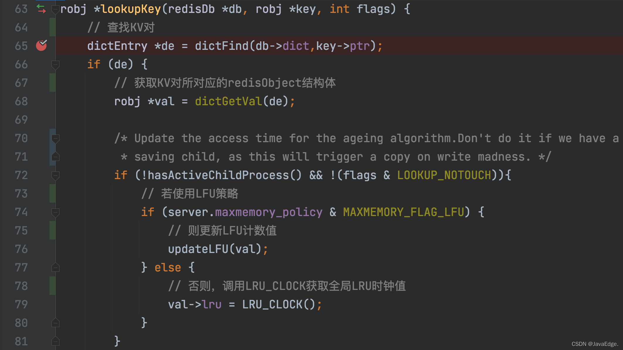 只要一个KV对被访问,其LRU时钟值就会被更新!而当一个KV对被访问时,访问操作最终都会呼叫lookupKey