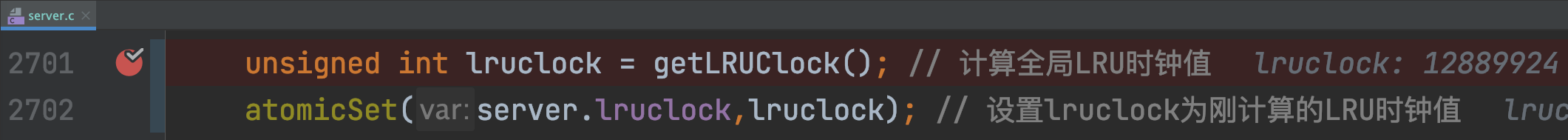 这全域LRU时钟保存在Redis全域变量server的成员变量lruclock