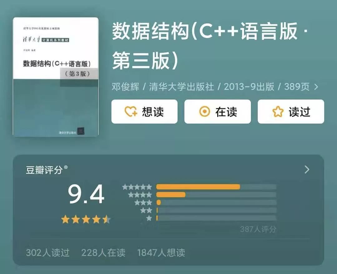 对,清华大学邓俊辉教授编著的,豆瓣评分也蛮高的,这本书还配套了视频课程,是免费的,可以在学堂在在线看,我之前也有推荐过,