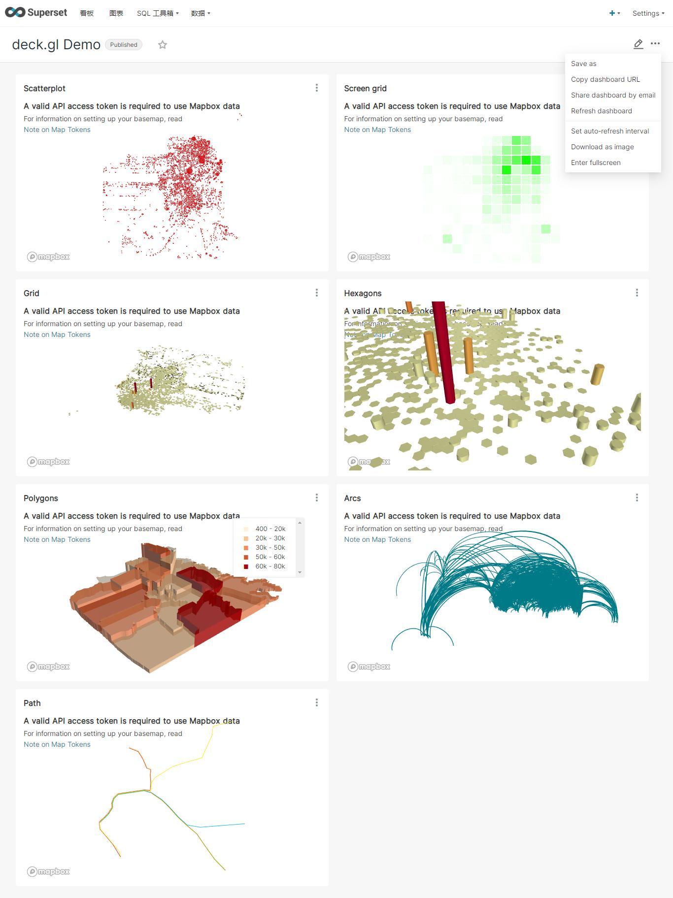 Superset也可利用于资料可视化成果共享,实作团队协同,使用者可将制作好的图表或发布的dashboard可见于团队成员,并通过权限配置控制团队成员对它们的可编辑性,各成员可发挥各自的想法,实作迭代化更新,