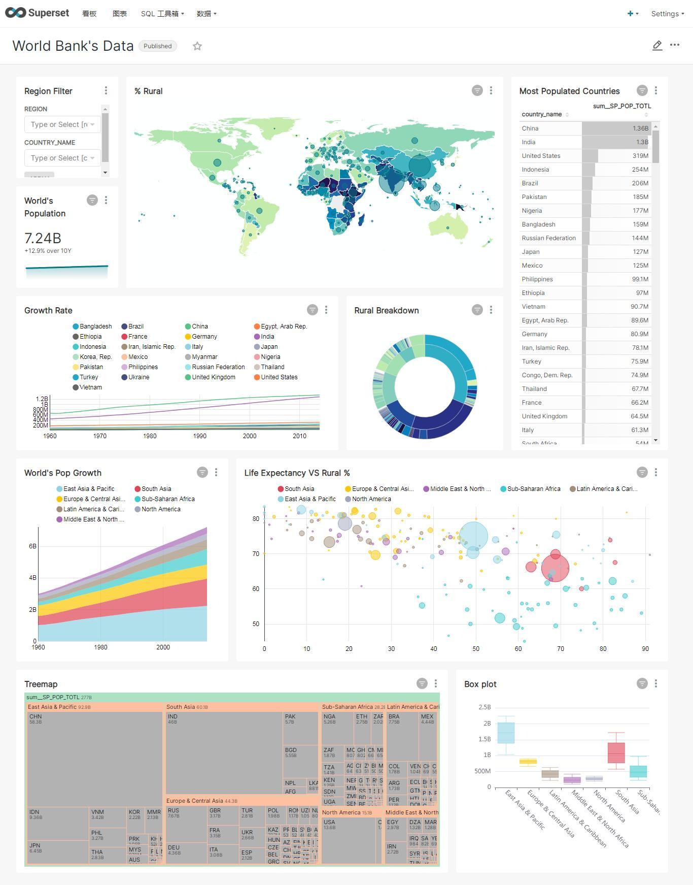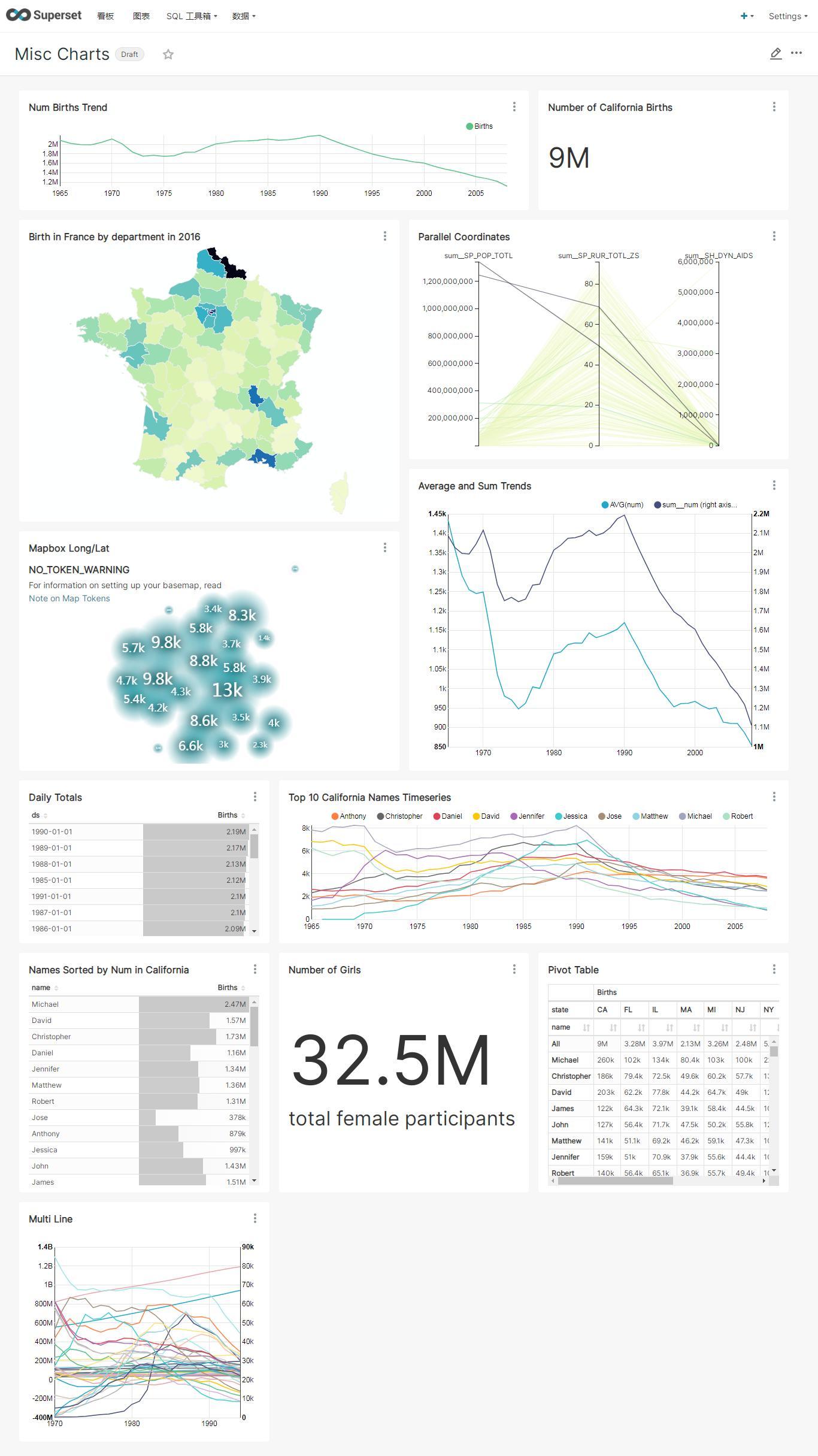 Superset的demo的一些广告牌和图表的效果,具体如下图:
