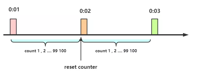 7  * 每分钟只允许100个请求,第一个请求进去的时间为startTime,在startTime + 60s内只允许100个请求
