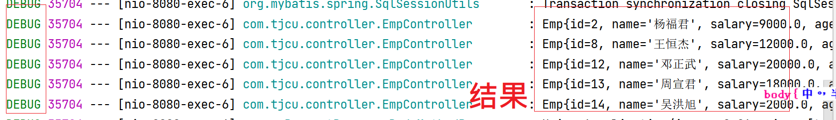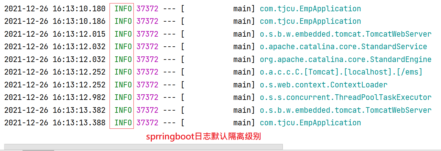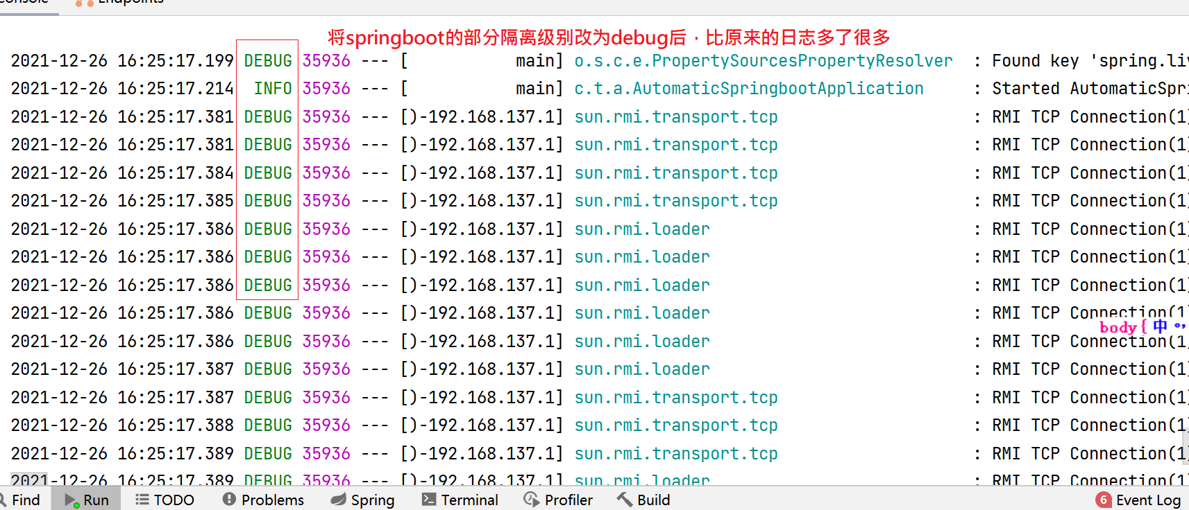 • 注意:因为springboot如果使用debug作为日志打印的东西太多了,所以改用info为默认日志级别,但是mybatis等使用的是debug作为默认日志级别,所以我们需要兼顾他的日志隔离级别