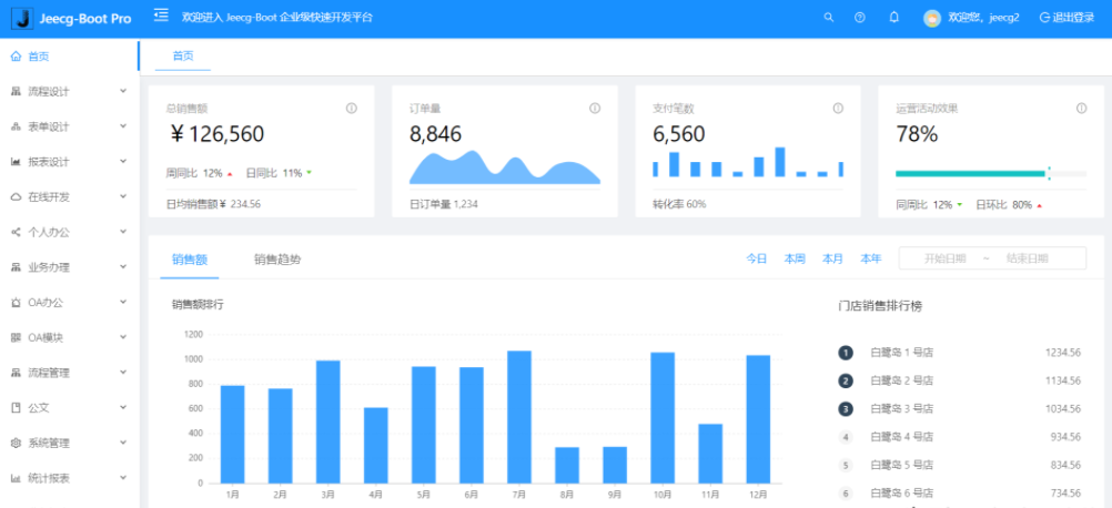 效果预览:http://demo.open.renren.io/renren-fast/#/home