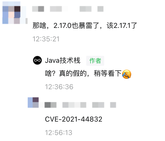 就在昨天,堆栈长打开公众号,在《团灭!Log4j 1.x 也爆雷了,,,速速弃用!!》一文中,有小伙伴给堆栈长留言: