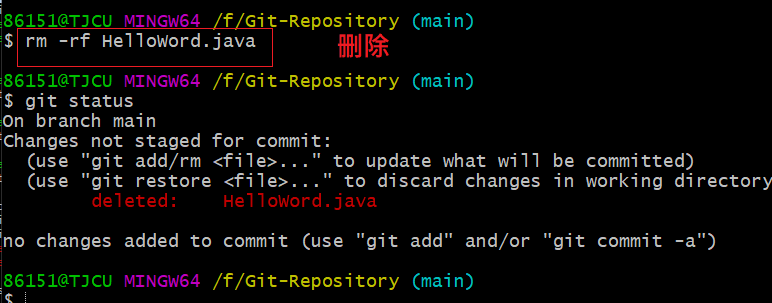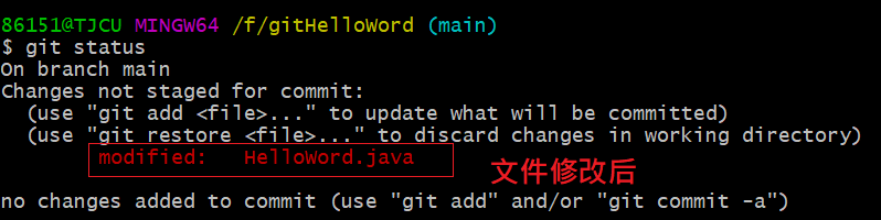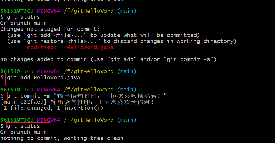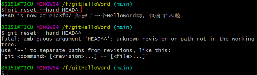 86151@TJCU MINGW64 /f/gitHelloWord (main)