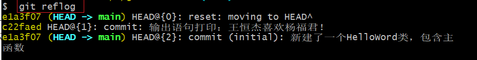 $ git commit -m "新建了一个HelloWord类,包含主函式"