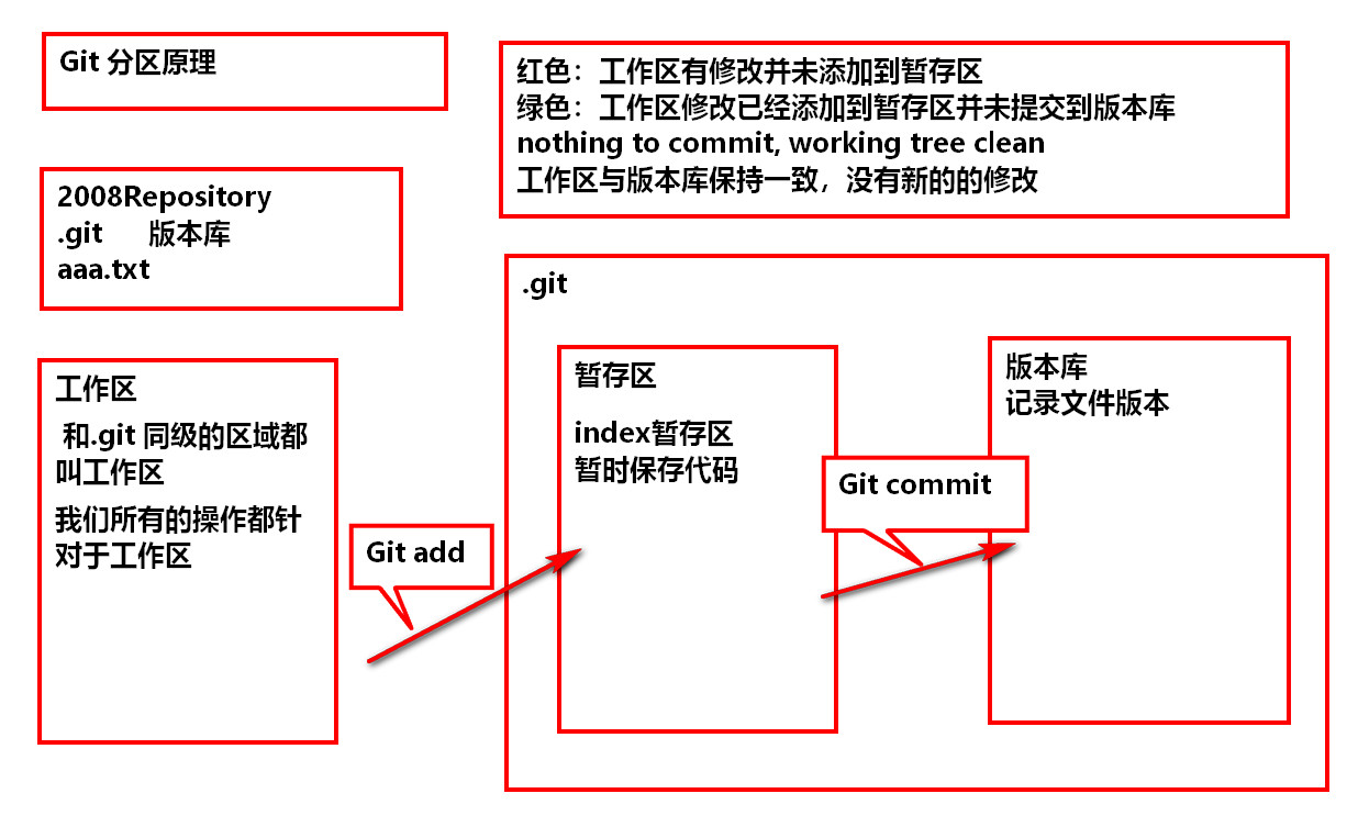 • 红色:作业区已修改并未添加到暂存区