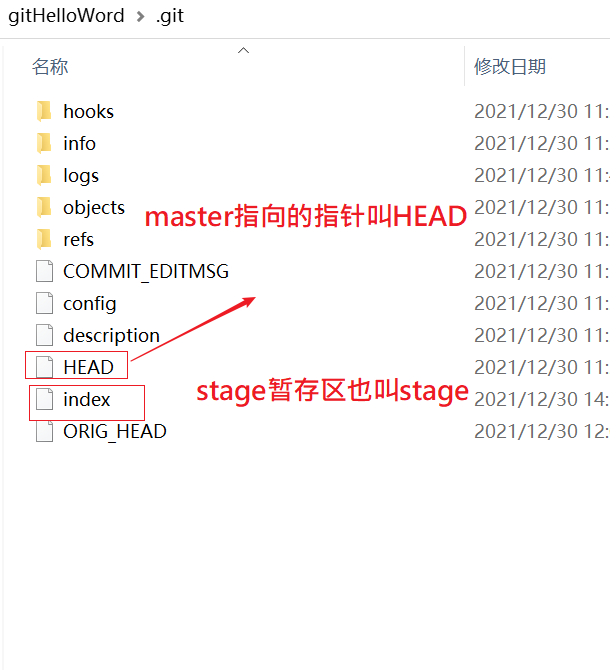 Git的版本库里存了很多东西,其中最重要的就是称为stage(或者叫index)的暂存区,还有Git为我们自动创建的第一个分支master,以及指向master的一个指标叫HEAD