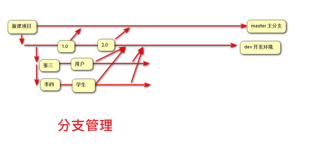 • 用于管理个人代码,在所有人确认无误后汇总合并分支,平时在操作时分支之间互不干扰