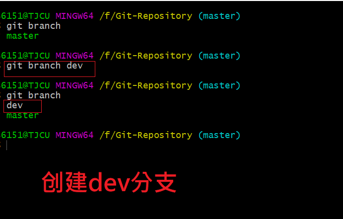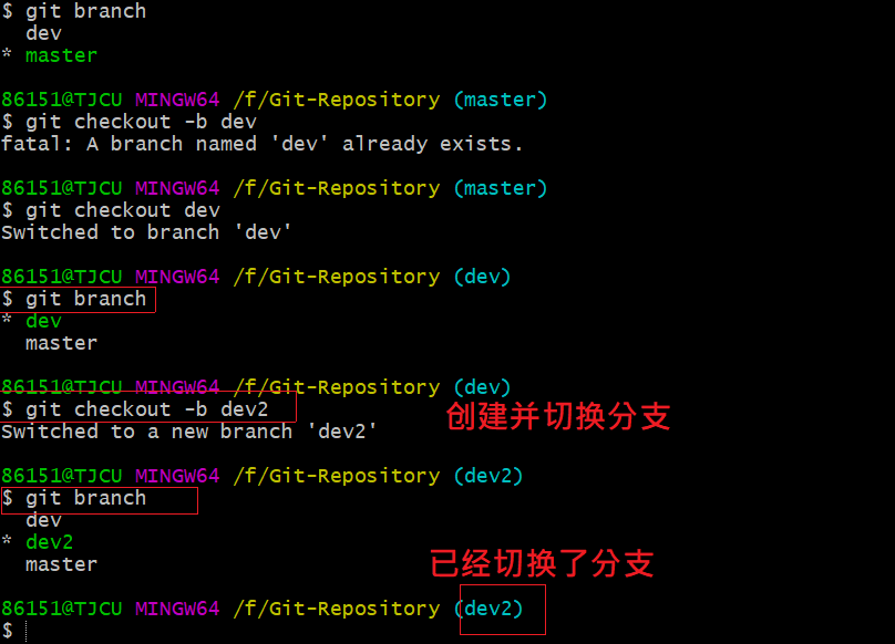 e、创建并切换分支