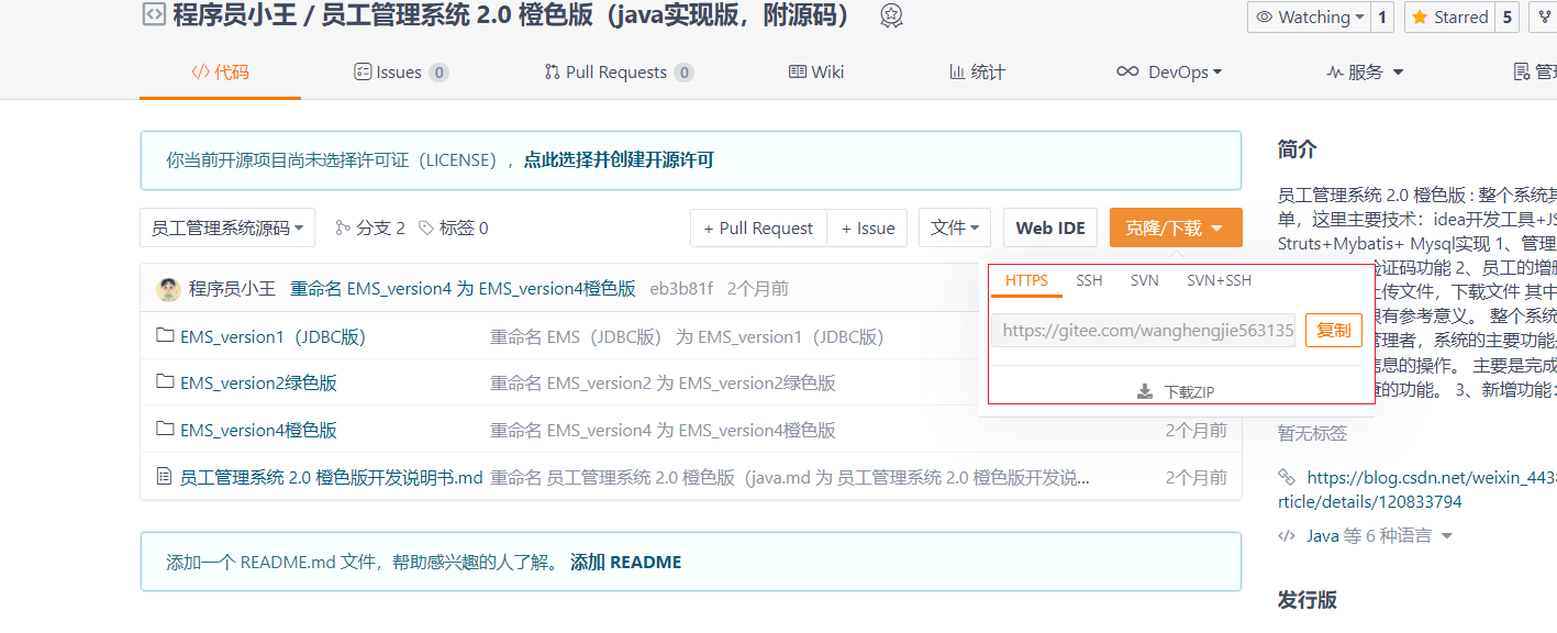 git clone ``[git@gitee.com](mailto:git@gitee.com)``:wanghengjie563135/EMS.git