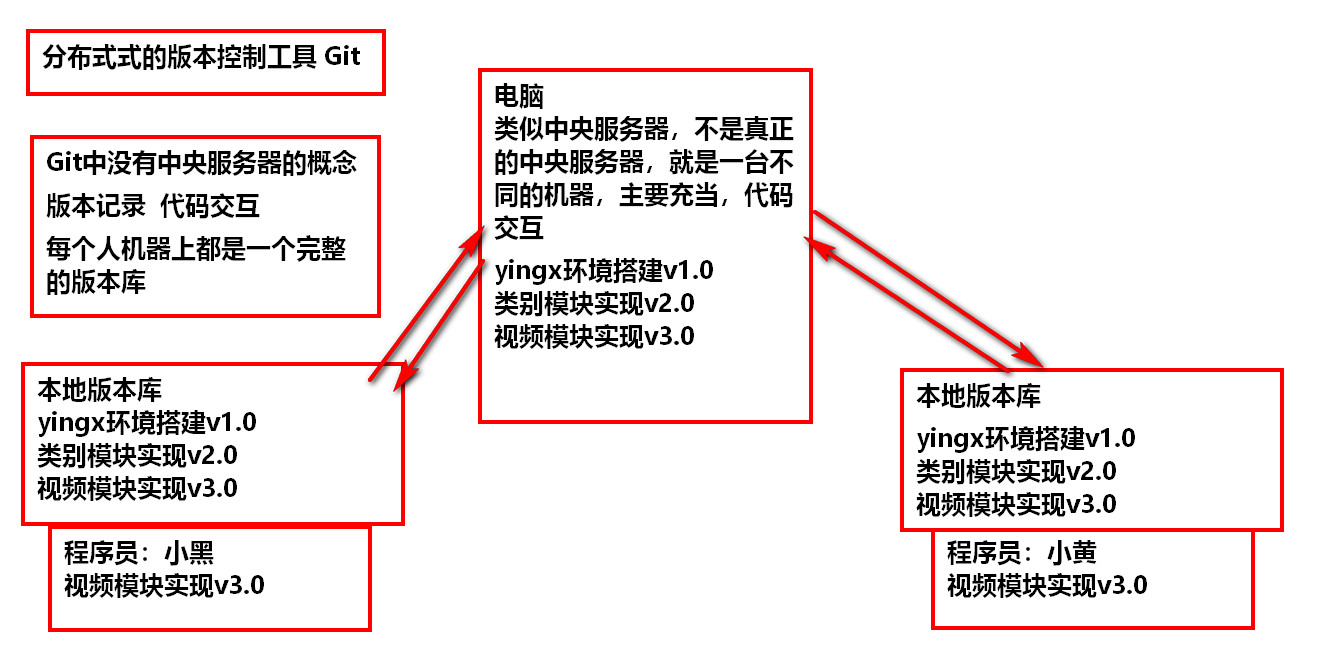 • 和集中式版本控制系统相比,分布式版本控制系统的安全性要高很多,因为每个人计算机里都有完整的版本库,某一个人的计算机坏掉了不要紧,随便从其他人那里复制一个就可以了,而集中式版本控制系统的中央服务器要是出了问题,所有人都没法干活了,
