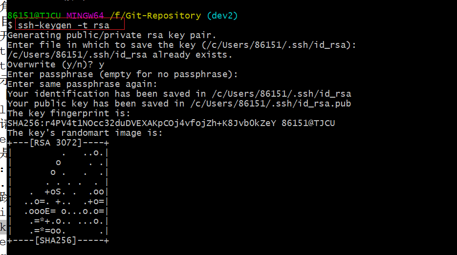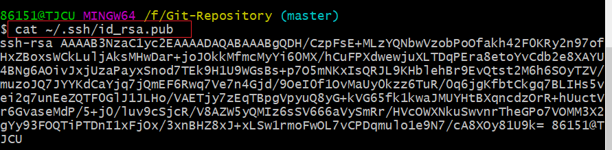 • 查看自己的公钥:cat ~/.ssh/id_rsa.pub