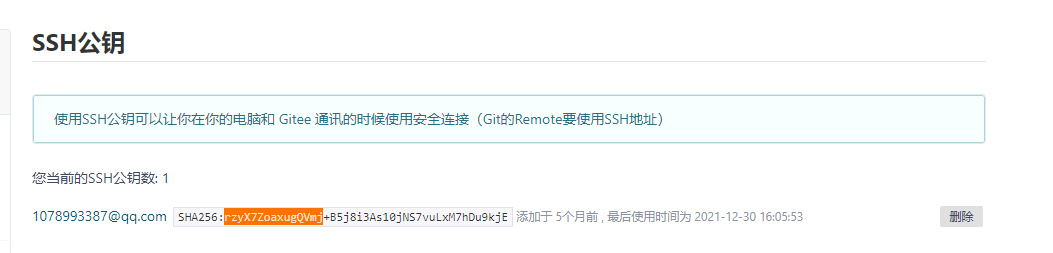 g、设定gitee访问权限——配置公钥