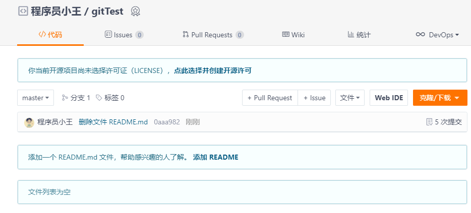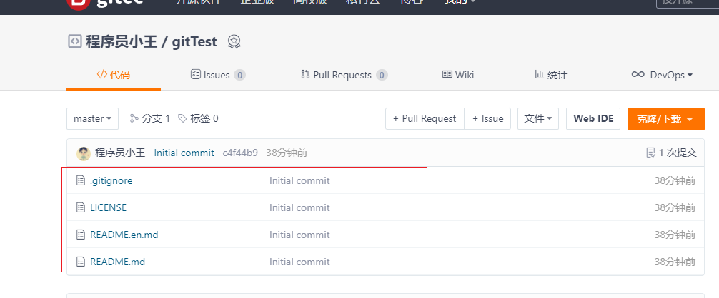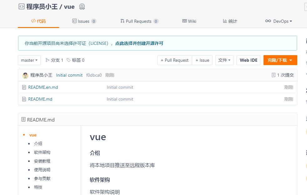 • 报错原因:们在创建仓库的时候,都会勾选“使用Reamdme档案初始化这个仓库”这个操作初识了一个README档案并配置添加了忽略档案,当点击创建仓库时