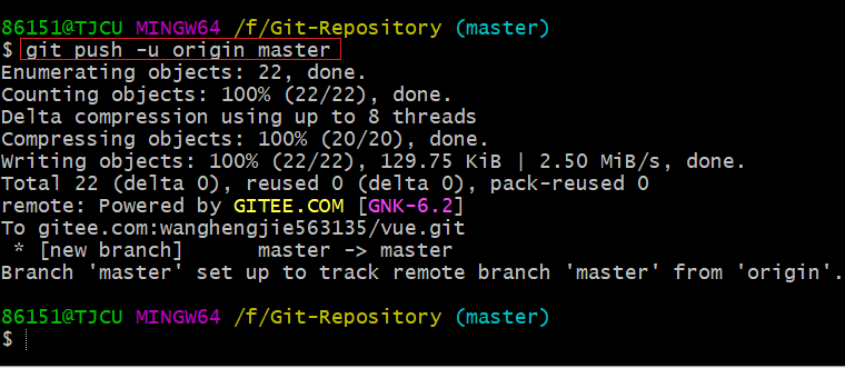 git push -u origin master #推送本地库项目至远程仓库
