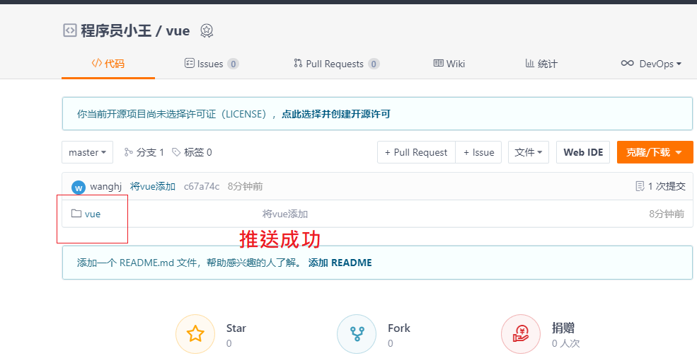 • git remote add origin ``[git@gitee.com](mailto:git@gitee.com)``:wanghengjie563135/vue.git #当前仓库与远程仓库建立一个链接