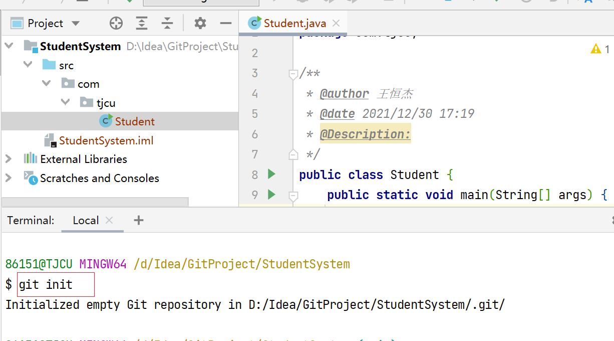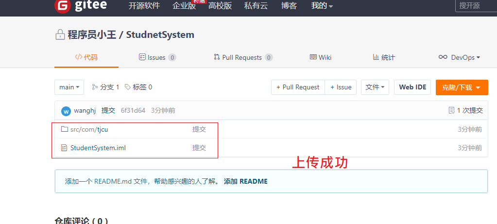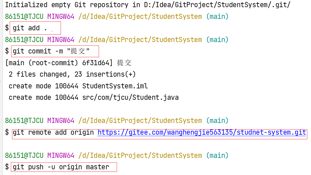 git remote add origin https://gitee.com/wanghengjie563135/studnet-system.git #当前仓库与远程仓库建立一个链接