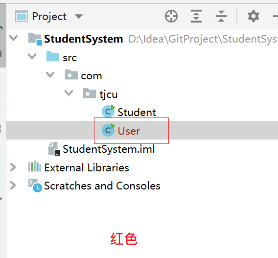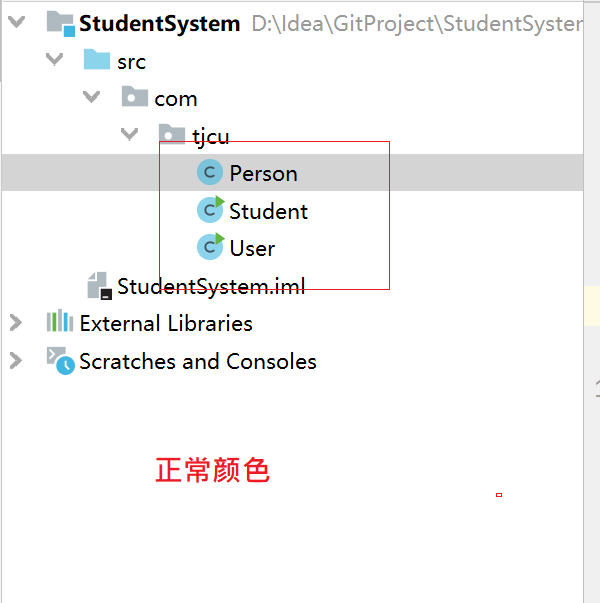 • 蓝色:该类已经提交到版本库,有修改 修改之后可以直接commit