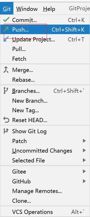 • 提交远程库 :右击要提交档案/档案夹–>Git–> Push --> 选择Push