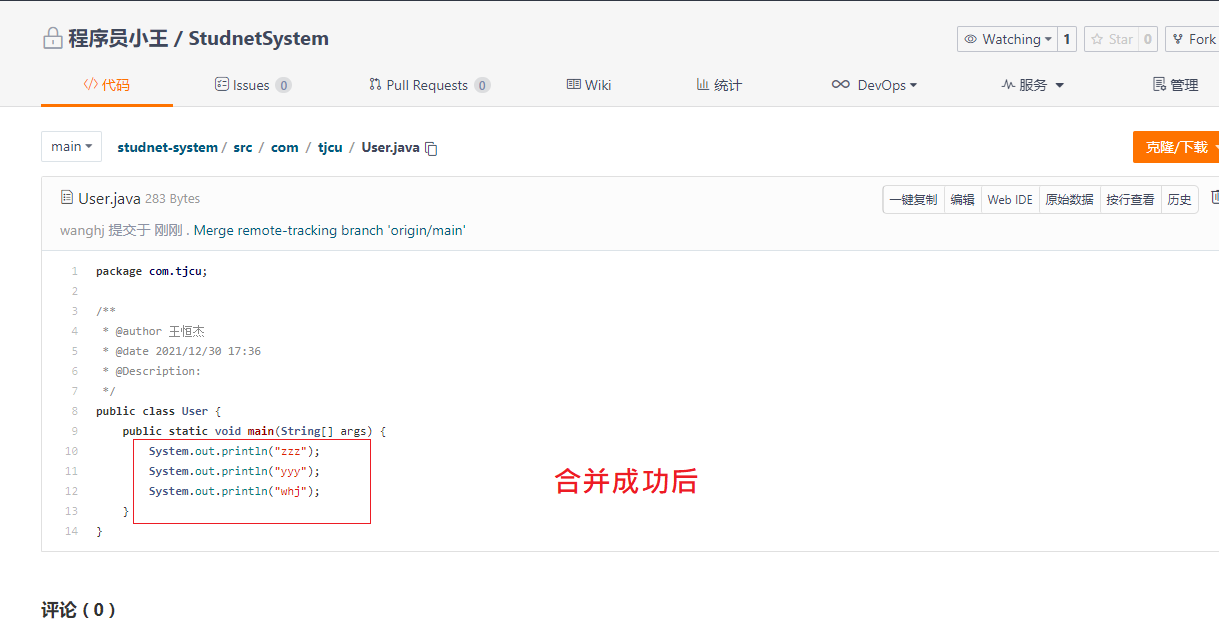 1、代码无交集 直接pull成功