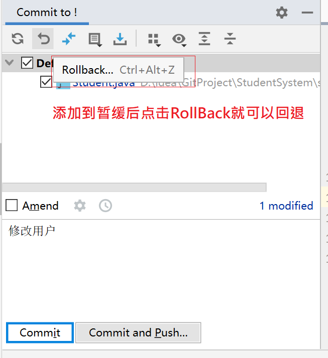 选择commit视窗(project下)–>右击要回退的档案/目录–>Rollback